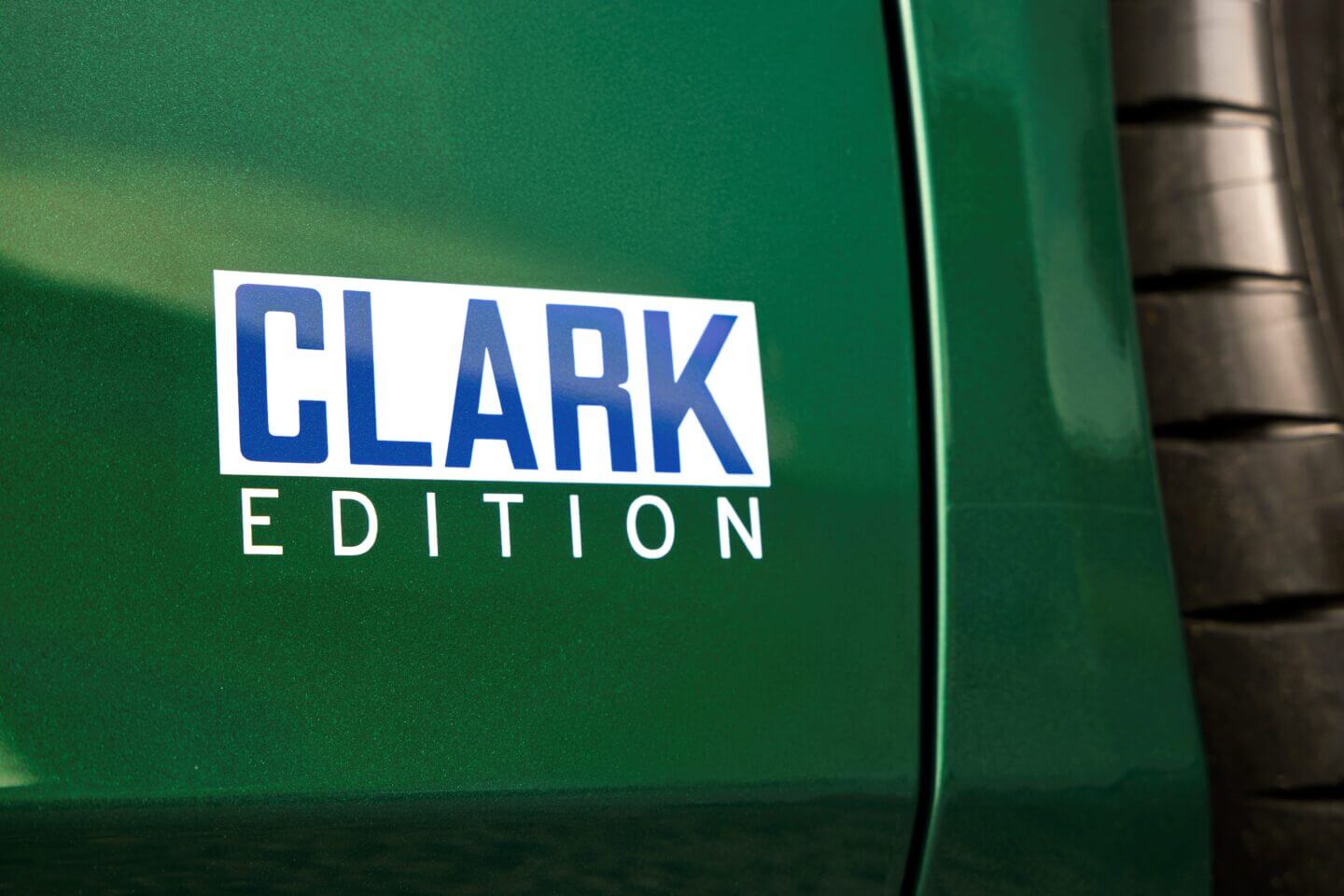 Optisch orientiert sich die Emira Clark Edition an Clarks Indy-Sieg. Die Lackierung in Clark Racing Green, der gelbe Frontstreifen und silberne Spiegel zitieren den Lotus Type 38 von 1965, dazu ein schwarzes Dach, gelbe Endrohre, blauer Akzent auf dem Tankdeckel. Der Streifen entlang der Fahrzeugflanke ist handgemalt und das historische Clark-Logo auf den Türen komplettiert den Look von damals.