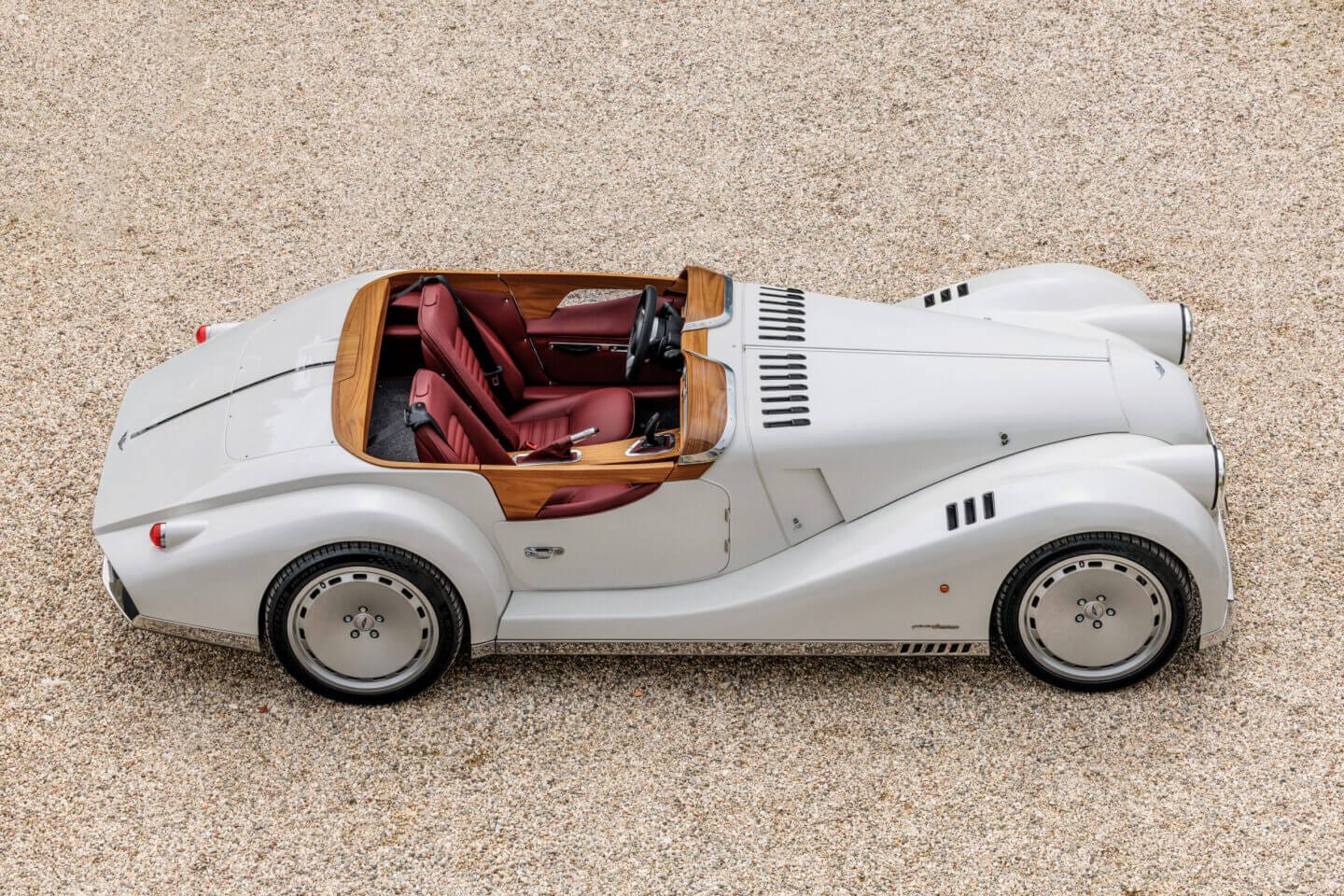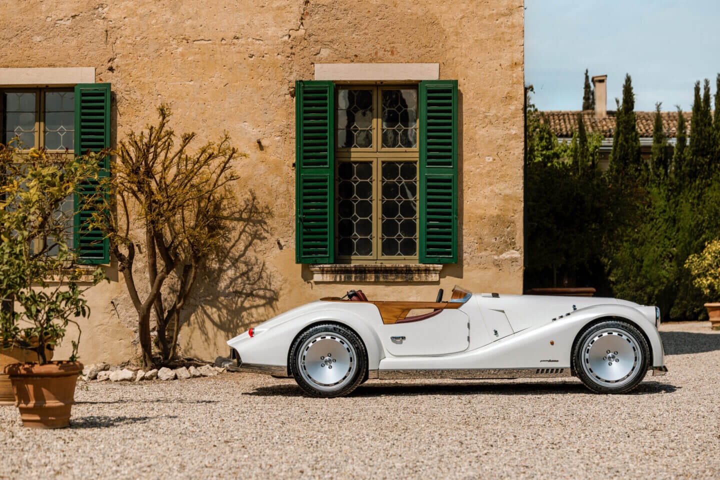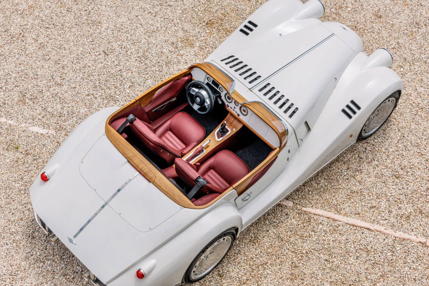 Das Projekt „Midsummer“ feiert mehr als zwei Jahrhunderte kombinierter Coachbuilding-Erfahrung zwischen Morgan und Pininfarina. Das Barchetta-Design von Midsummer zelebriert einen ikonischen europäischen Karosseriestil und demonstriert die Flexibilität der zeitlosen Morgan-Silhouette. Die exponierte Bauweise und der sensorische Charakter geben den Insassen des Midsummer eine intensivere Verbindung zur Maschine und zur Umgebung.