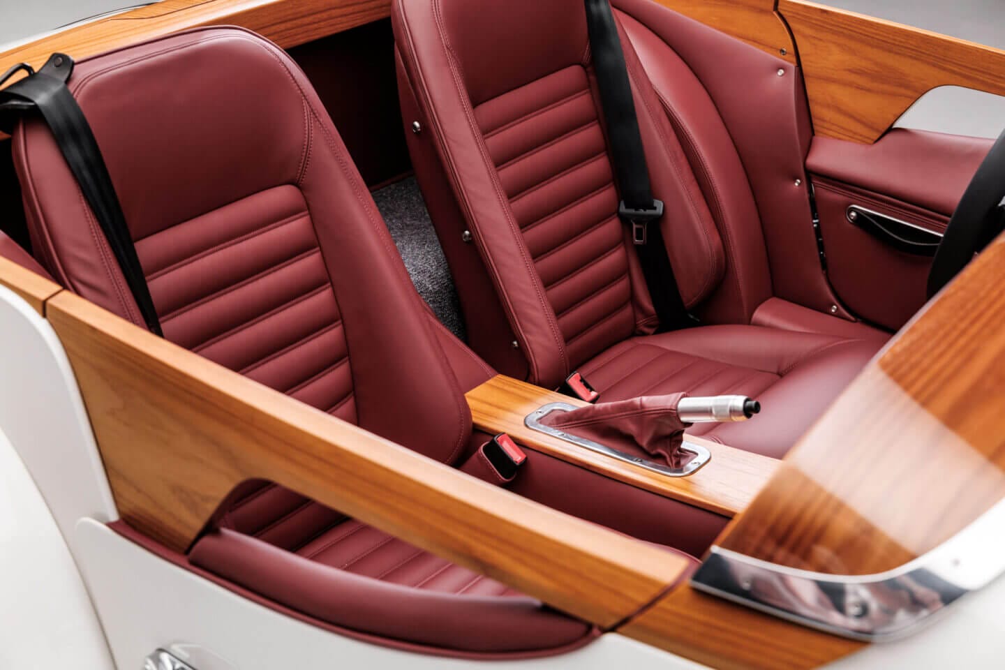 Mehr als 400 einzelne Schichten nachhaltig bezogener Teakholzbretter werden kunstvoll laminiert, um die skulpturalen Holzstrukturen zu schaffen, die die Kabine umgeben und eine markante Schulterlinie bilden. Die Paneele für jede handgeformte Aluminiumkarosserie benötigen mehr als 250 Stunden Arbeitszeit.