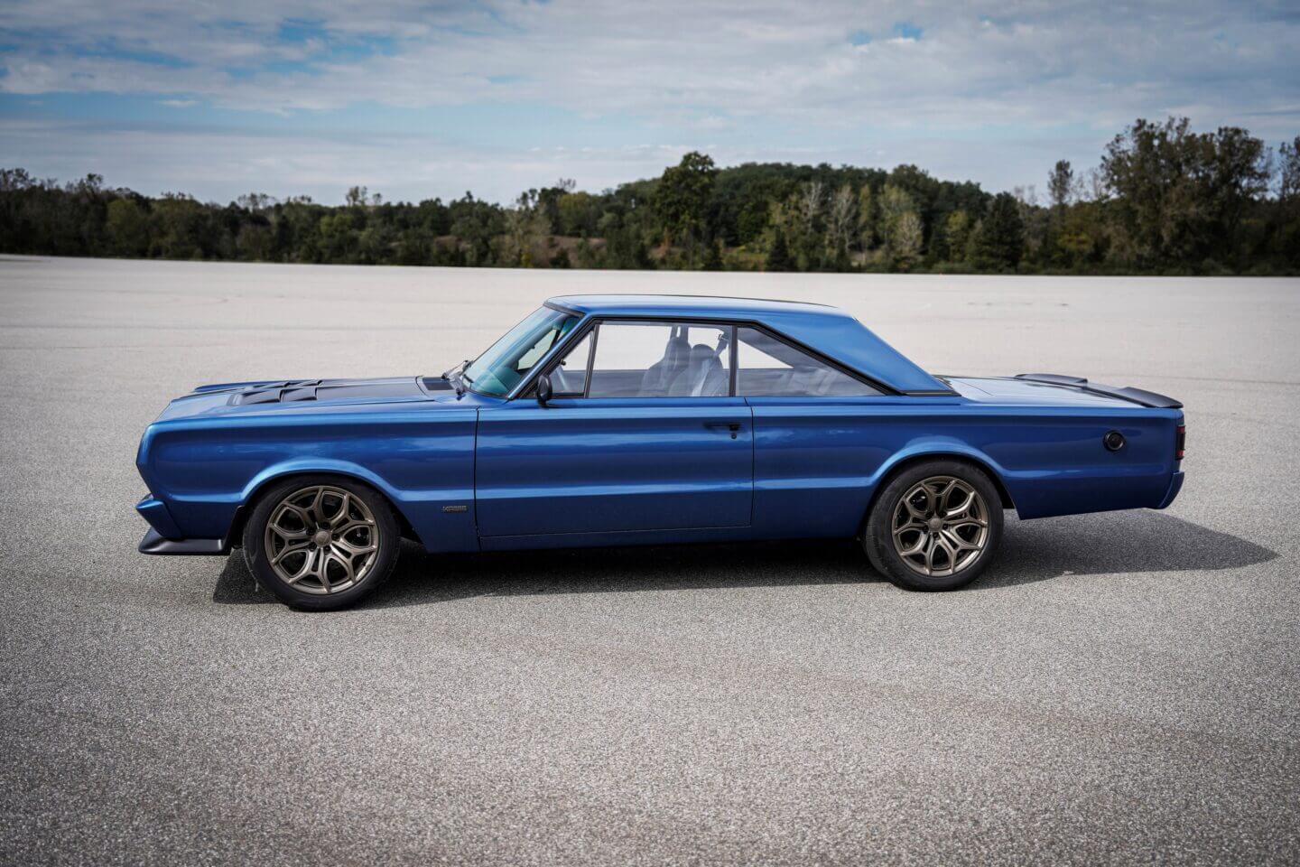 Weitere visuelle Ankerpunkte sind ein Kohlefaser-Frontsplitter und ein maßgefertigter, flacher Heckspoiler. Ein klassisches Mopar-Restomod wäre nicht komplett, ohne eine Hommage an die Flip-Top-Tankdeckel der 1960er- und 70er-Jahre, die hier als Ladeanschlussdeckel dient.