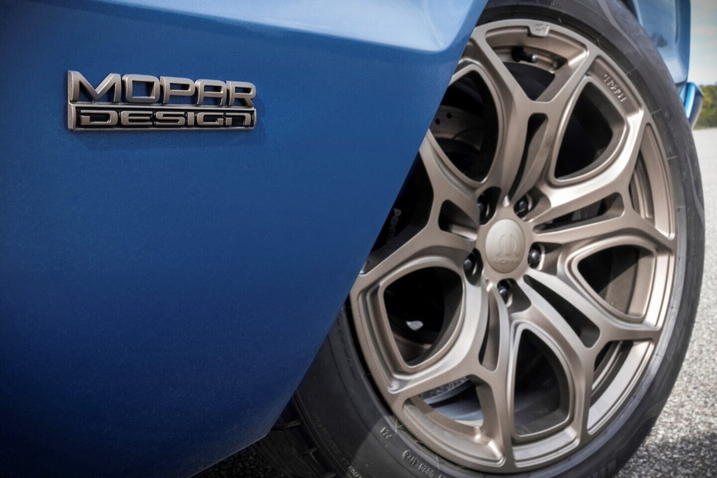 Das Mopar-Designteam hat die hinteren Radkästen verbreitert, um dem Fahrzeug ein aggressives und modernes Aussehen zu verleihen. Die maßgeschneiderten Stoßstangen sind in Wagenfarbe an die Karosserie angepasst und in die Kotflügel integriert. Der Look wird durch die äußeren Zierleisten (Grill, Fensterrahmen, Doppelseitenspiegel und Heckblende), die in Satin Black lackiert sind, komplett.