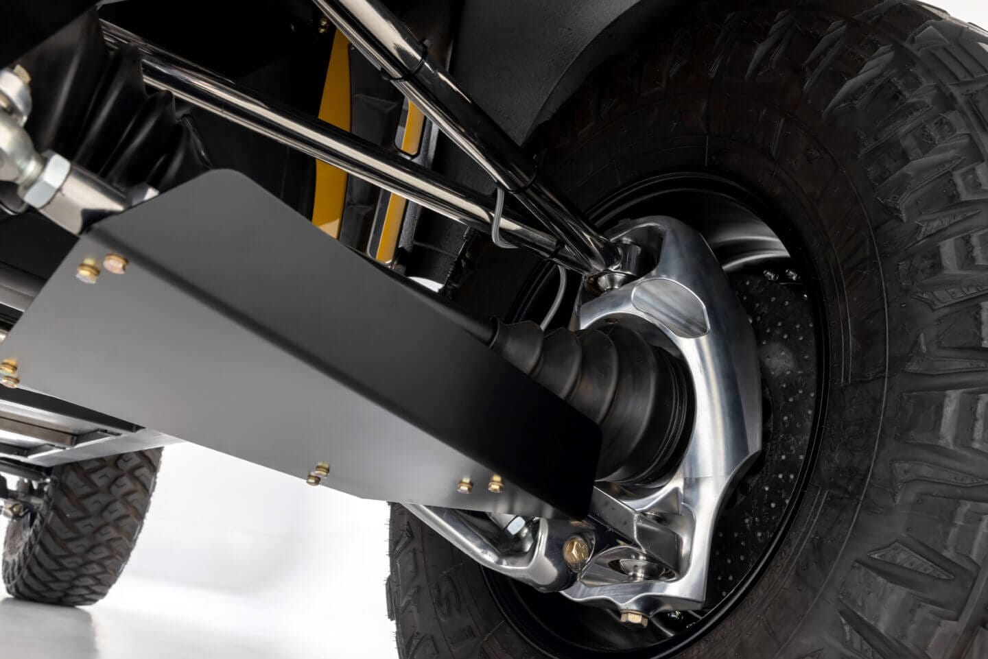 Das Fahrwerk des SV Rover ist eine Klasse für sich. Mit einer inboard pushrod Vorder- und Hinterachsluftfederung, die 30 Zoll Radweg ermöglicht, sowie der Möglichkeit zur Höhen- und Dämpfungsanpassung, ist dieses Fahrzeug sowohl für die Rennstrecke als auch für das Gelände gerüstet. Abgerundet wird das Paket durch 40-Zoll-Reifen auf 20-Zoll-Schmiederädern, Vierradlenkung und ein Bremssystem, das aus Brembo 6-Kolben-Bremssätteln und 400 mm großen Karbon-Keramik-Bremsscheiben besteht.
